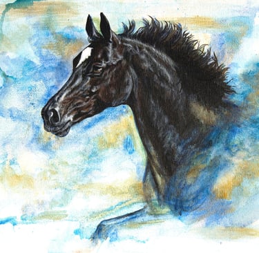 Het blauw weerspiegelt zijn diepe rust, trouw en wijsheid, precies wie hij is. De gouden strepen staan voor zijn stralende karakter – warm, gul en onvermoeibaar in zijn toewijding. Van speelse kinderpony tot Nederlands kampioen vaardigheid, hij doet alles met hart en ziel voor zijn bazen.