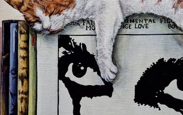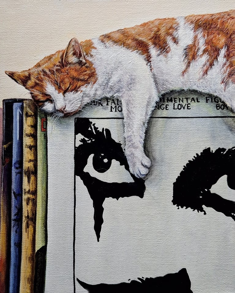 These two were always inseparable—always together, always close. Now that his friend lives elsewhere, this painting hangs there, so he can see him every day and Moos is always a little closer.