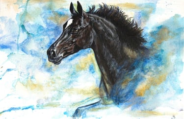 Het blauw weerspiegelt zijn diepe rust, trouw en wijsheid, precies wie hij is. De gouden strepen staan voor zijn stralende karakter – warm, gul en onvermoeibaar in zijn toewijding. Van speelse kinderpony tot Nederlands kampioen vaardigheid, hij doet alles met hart en ziel voor zijn bazen.